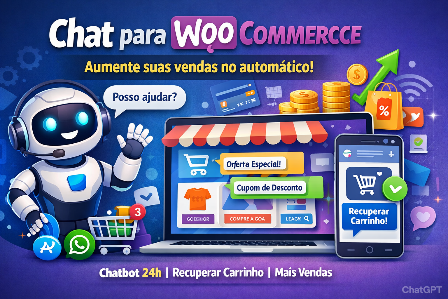 Um chat para WooCommerce pode transformar completamente sua taxa de conversão, reduzir abandono de carrinho e automatizar seu atendimento 24 horas por dia, diretamente dentro do seu site.